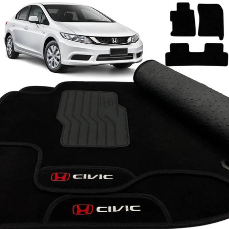 TAPETE CARPETE HONDA CIVIC 2012 A 2016 PRETO 3 PEÇAS