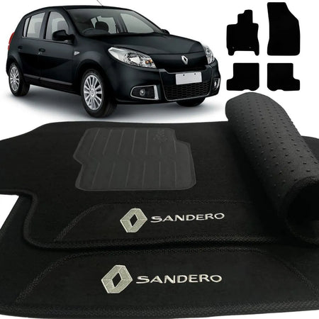 TAPETE CARPETE RENAULT SANDERO 2008 A 2012 PRETO 4 PEÇAS