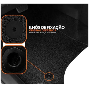 Garantia de instalação segura e estável! Nossos tapetes automotivos contam com ilhós de alta qualidade, evitando deslizamentos e proporcionando mais durabilidade. Escolha a segurança e o padrão original para seu veículo.