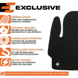 Produzido em capacho de alta resistência, é desenvolvido 100% sob medida para o modelo do veículo. Conta com viés premium que garante acabamento sofisticado, maior durabilidade e fácil higienização, proporcionando proteção e praticidade para o dia a dia.